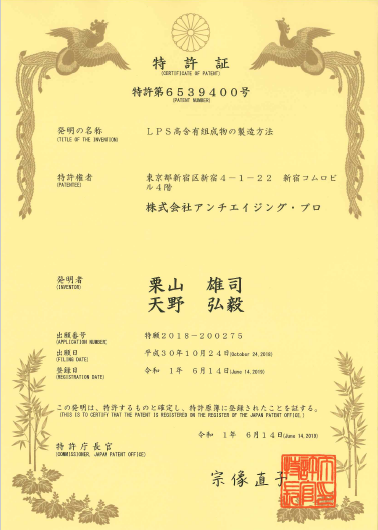 2019年6月14日、弊社では、「LPS高含有組成物の製造方法」について特許を取得しました。本特許は、主に弊社の赤ワインエキス末(赤ワインエキスR5)を対象とした特許です。