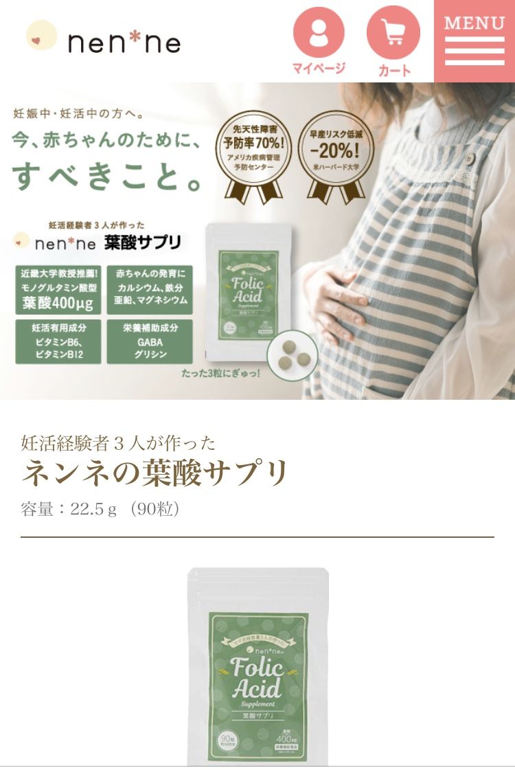 ここは、別商品で「先天性障害予防率70%、早産リスク低減-20%」と謳っている。